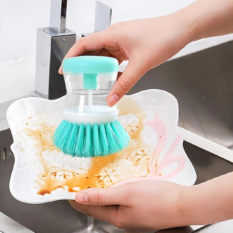 فرشاة تنظيف الأوانيفرشاة تنظيف الأواني مع زر ضغط لتوزيع الصابون