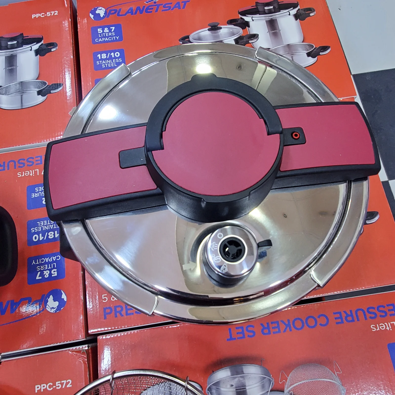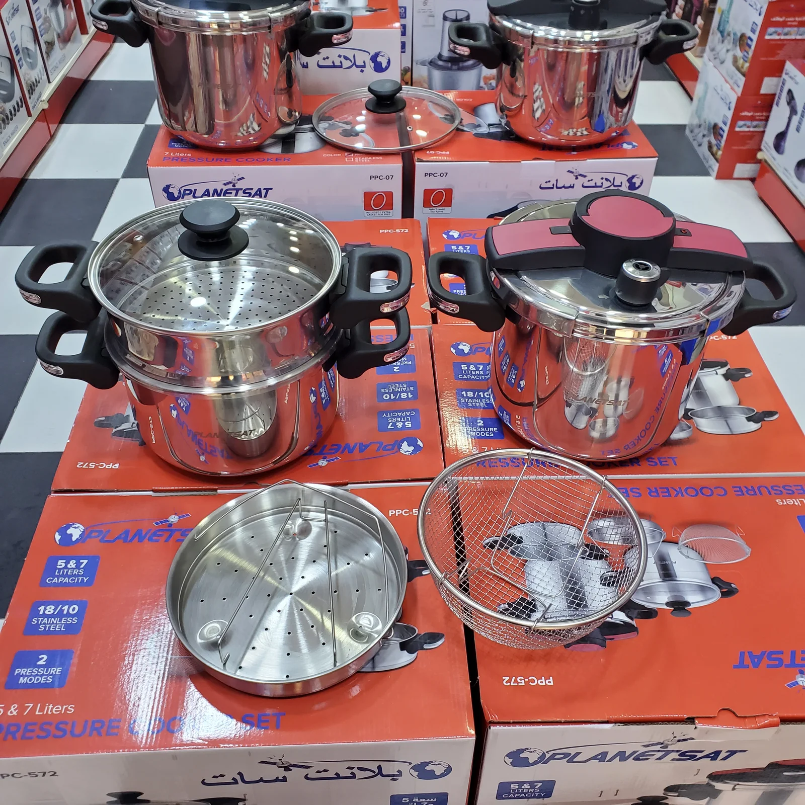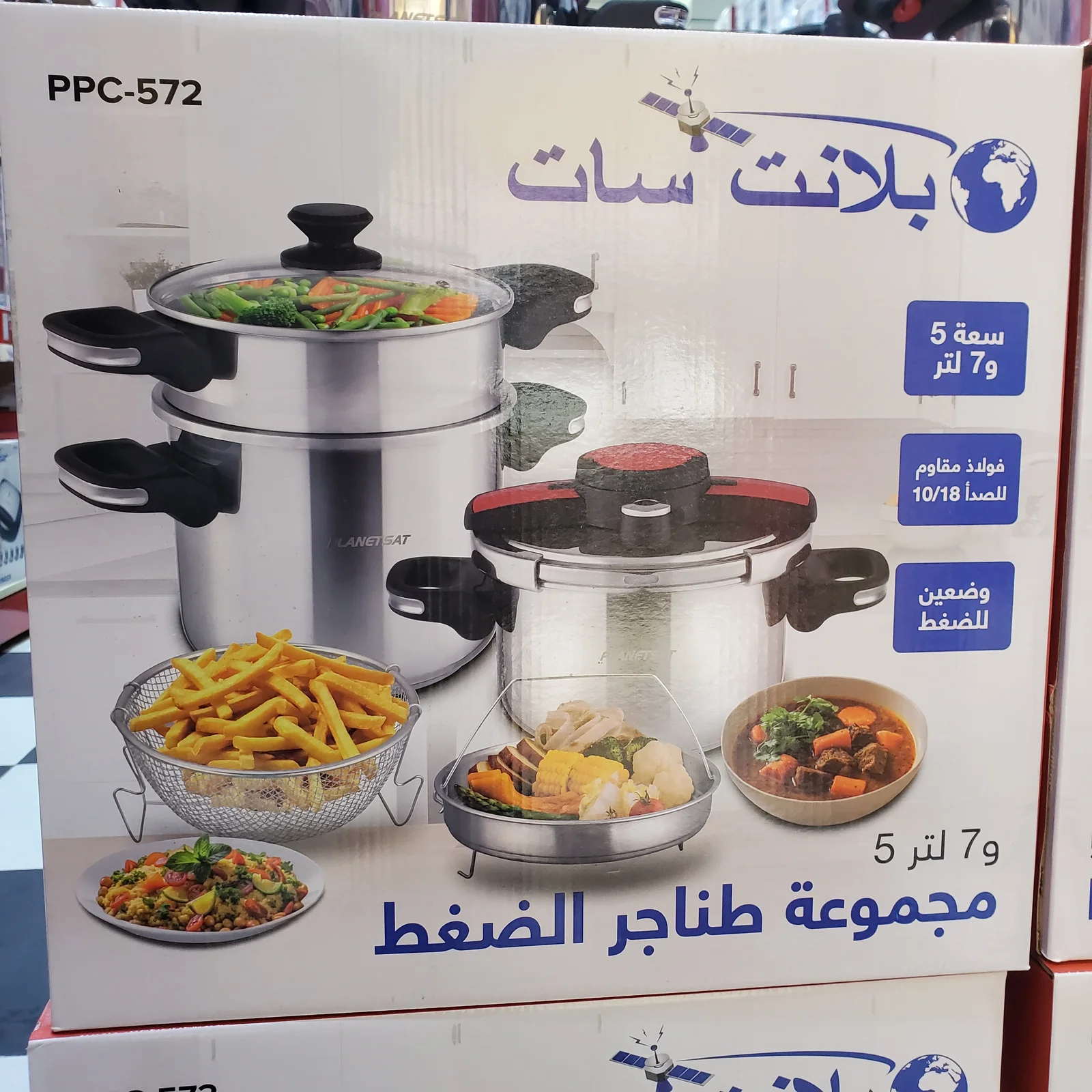 هذا المنتج من PlanetSat (موديل PPC-57) هو مجموعة طناجر ضغط عالية الجودة، تتميز بالمواصفات التالية: