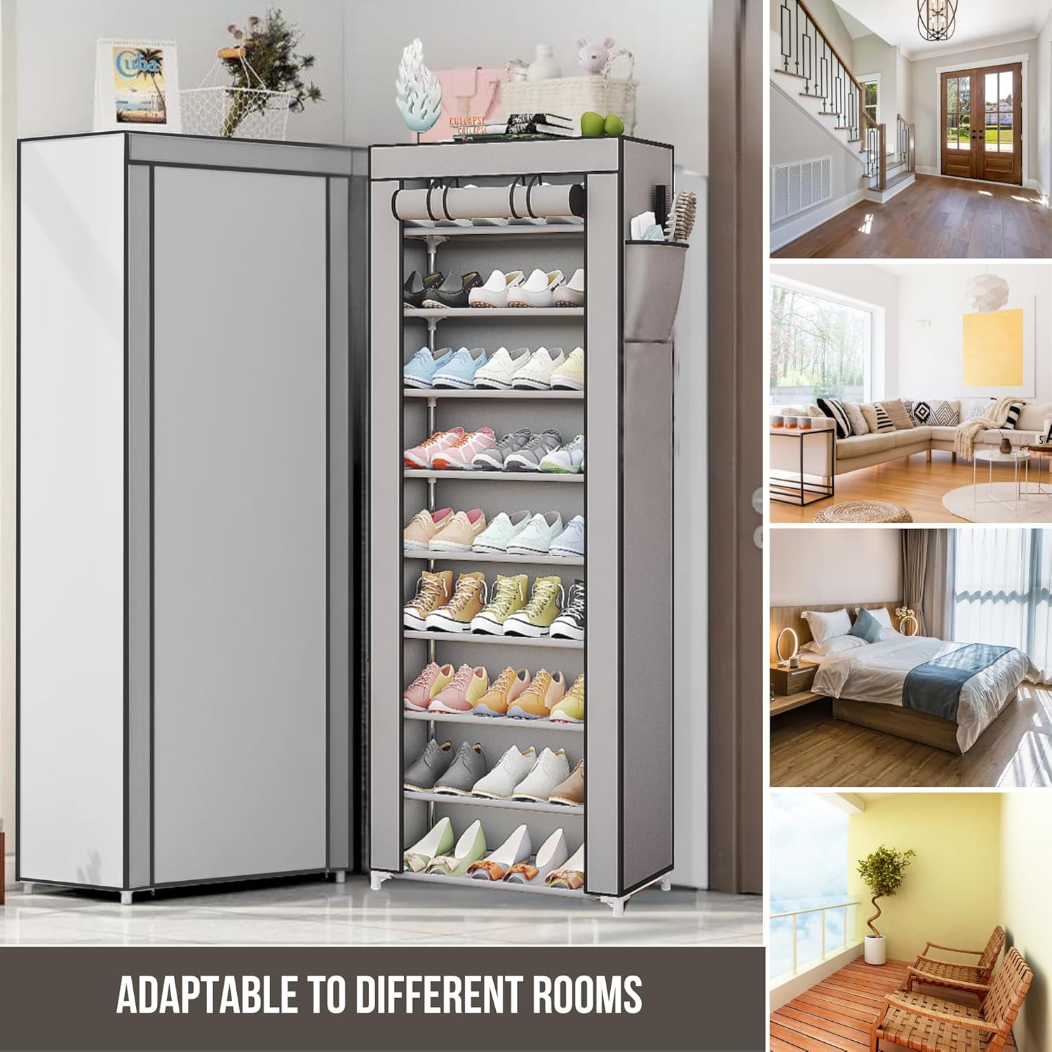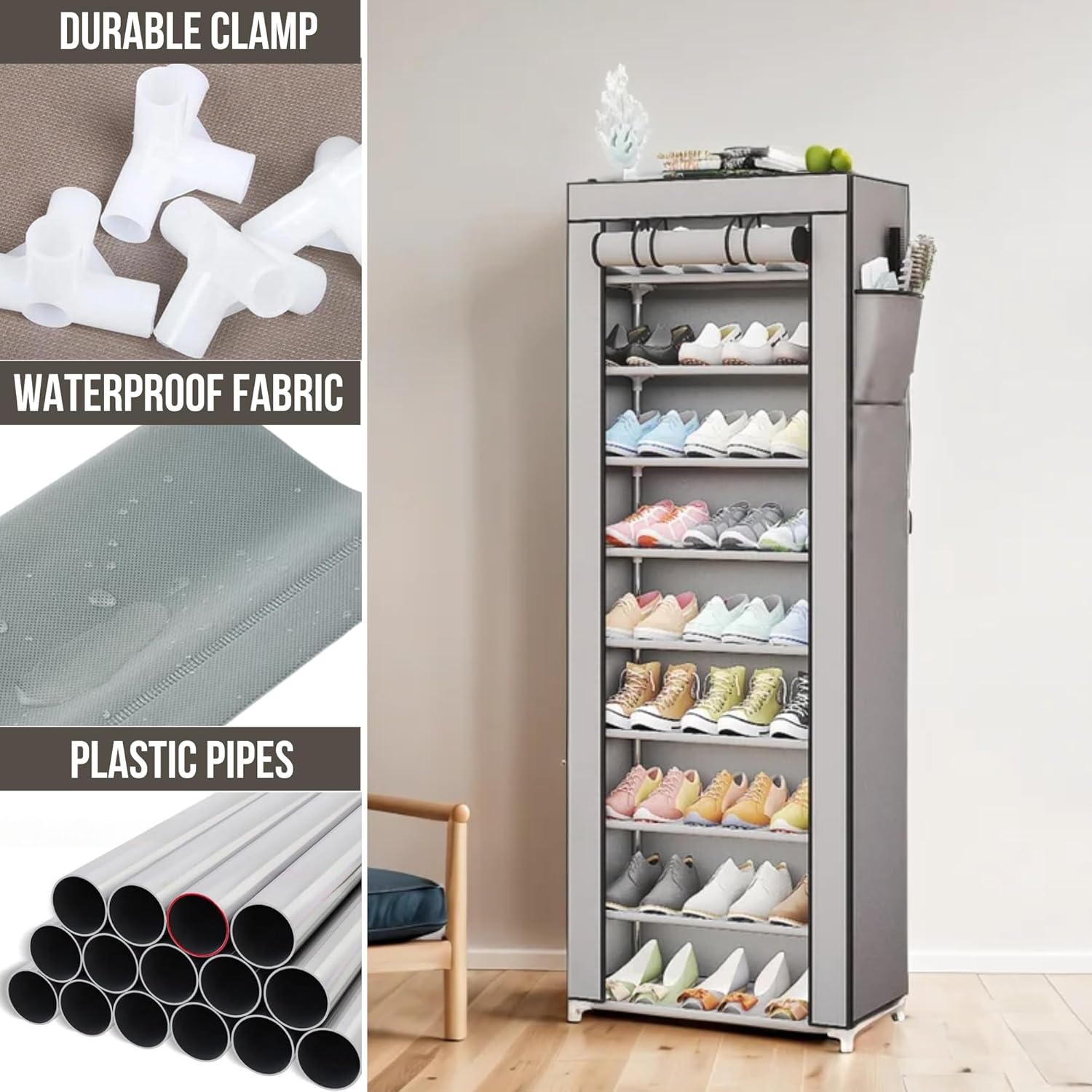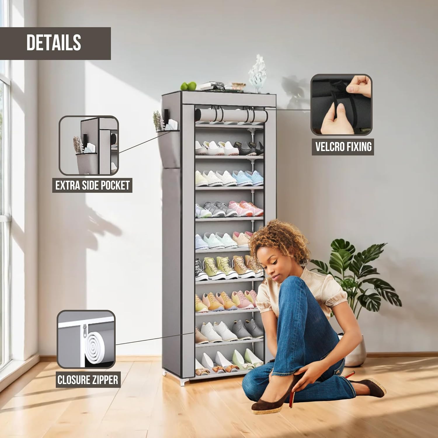 - غطاء “سيل-زيب” (Dustproof & Waterproof): مزود بغطاء من القماش غير المنسوج عالي الجودة مع سحاب متين؛ يحمي أحذيتك تماماً من الغبار والرطوبة، ويحافظ على مظهر الغرفة مرتباً بإخفاء المحتويات.
