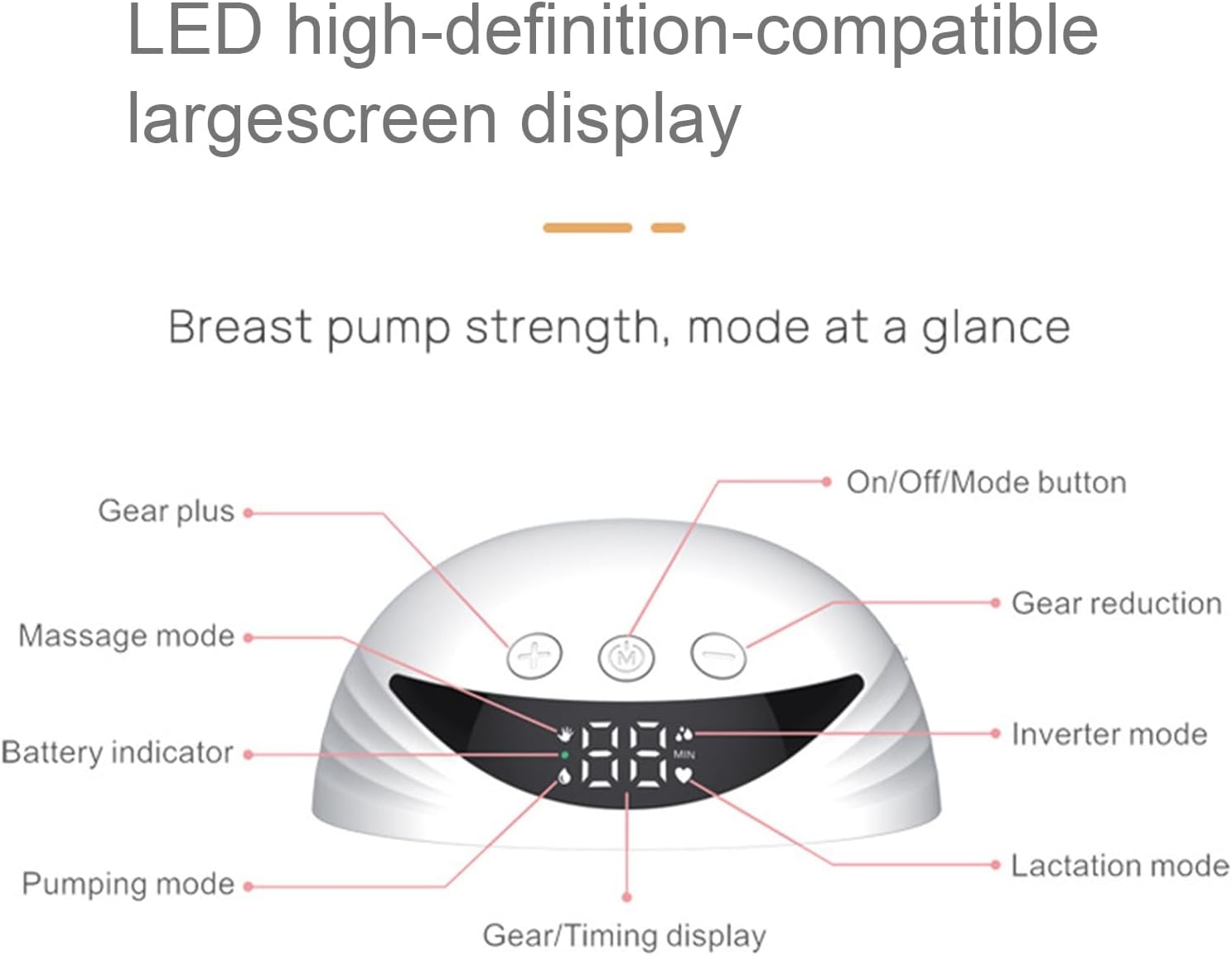 • شاشة عرض ذكية (Intelligent Display): تظهر لكِ الشاشة بوضوح كمية الحليب المستخرجة، مستوى البطارية، وتوقيت الضخ، مع خاصية الإيقاف المؤقت بلمسة واحدة.