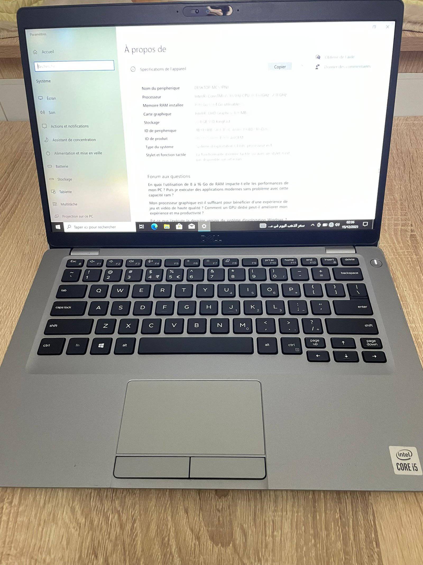 Cpu : i5 10eme