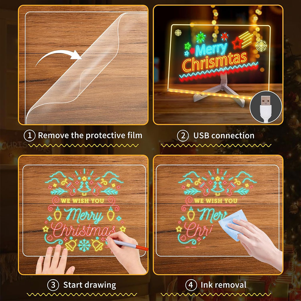 - على عكس الألواح التقليدية، تساعد هذه اللوحة المضيئة الأطفال والكبار على التركيز أكثر على ما هو مكتوب. يمكن استخدامها للرسم، للتخطيط اليومي، أو لترك رسائل لطيفة ومشجعة لأطفالك أو لأفراد العائلة.
