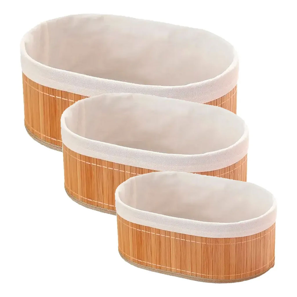 زيد لمسة طبيعية وراقية لدارك مع طقم سلال الخيزران البيضاوية. مصنوعة من خيزران طبيعي، قوي ويدوم، وتجمع بين الجمال والاستعمال اليومي.
