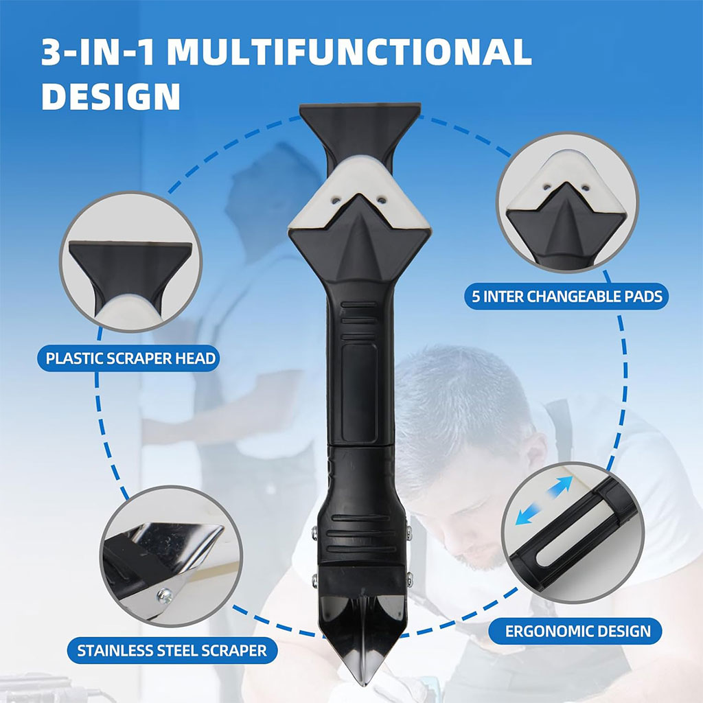 مزودة برأس ستانلس ستيل قوي يسهّل إزالة المواد الصلبة وبقايا السيلكون القديمة بكفاءة عالية.